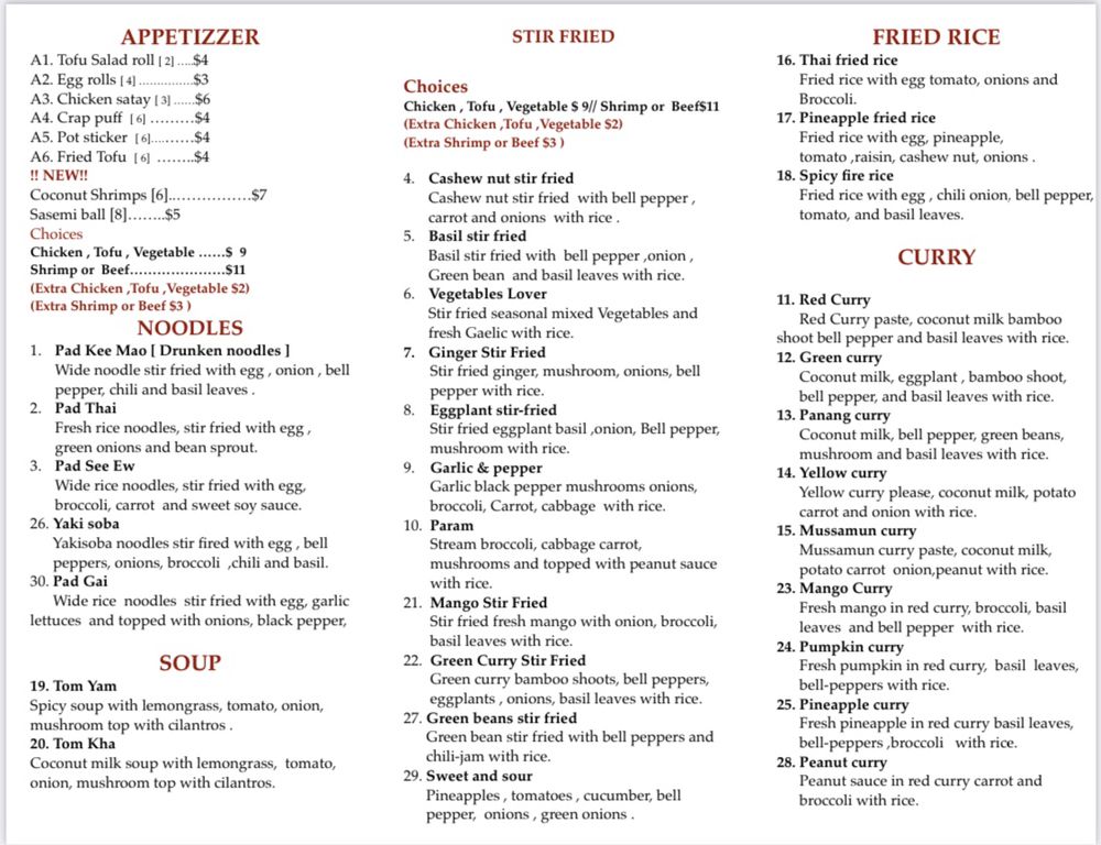 - Stir-fried Specialties: Indulge in the Cashew Nut or Basil Stir-Fried, crafted with fresh vegetables for a satisfying meal.